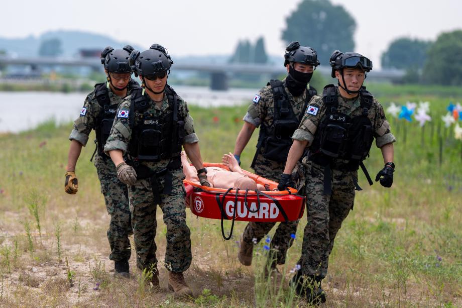 충북 증평군이 여름철 풍수해에 대비한 대응체계를 점검하고자 28일 보강천 일대에서 ‘2025년 재난대응 안전한국훈련’을 실시했다.