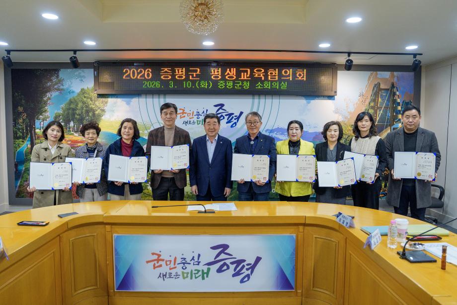 충북 증평군은 10일 군청 소회의실에서 ‘2026년 증평군 평생교육협의회’를 열고 지속 가능한 평생학습 도시 조성을 위한 정책 방향과 추진 전략을 논의했다.