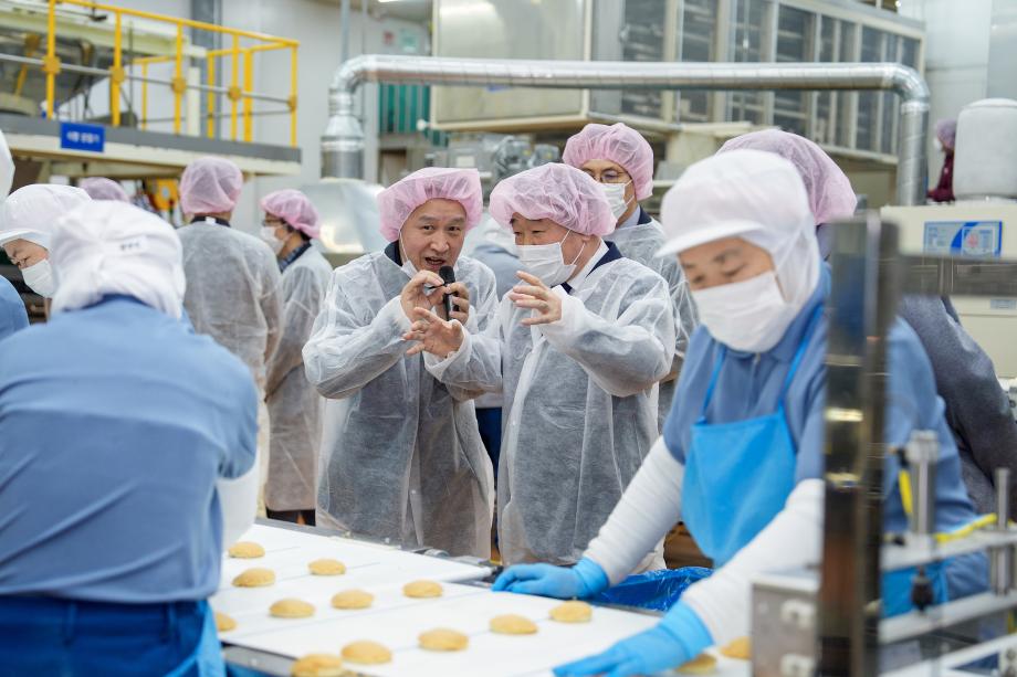 충북 증평군은 12일 이재영 군수가 도안테크노밸리에 위치한 ㈜신라명과(대표 박창훈, 홍수현) 증평사업장을 방문했다고 밝혔다.