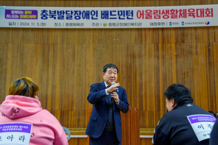 충북 증평군은 5일 증평체육관에서 완연한 가을하늘 아래 충북발달장애인과 ‘2024년 충북발달장애인 배드민턴 어울림생활체육대회’를 열었다고 밝혔다.