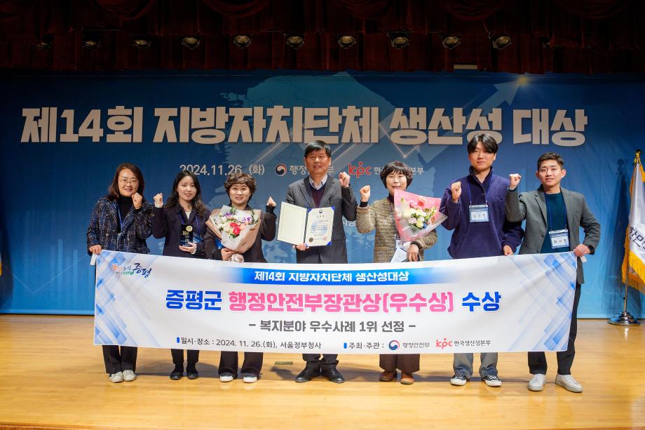 충북 증평군이 ‘제14회 지방자치단체 생산성대상’에서 우수사례 ‘복지분야’ 1위로 선정돼 행정안전부장관 기관상을 수상했다.