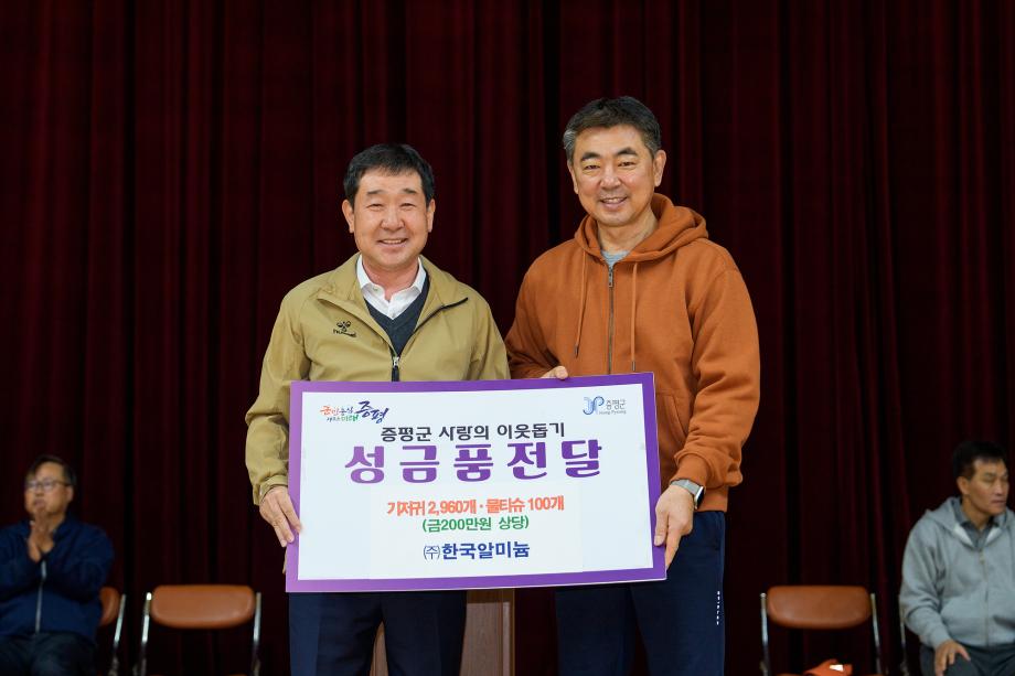 ㈜한국알미늄, 증평군에 200만원 상당 물품 기탁