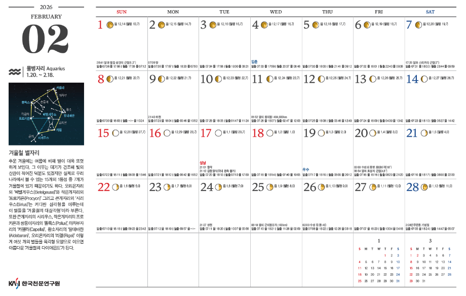 2026년 2월 주요 천체관측 대상 및 천체현상