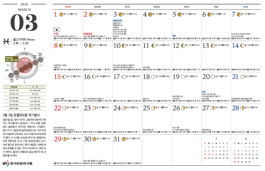 천체현상은 한국천문연구원에서 제공했습니다.